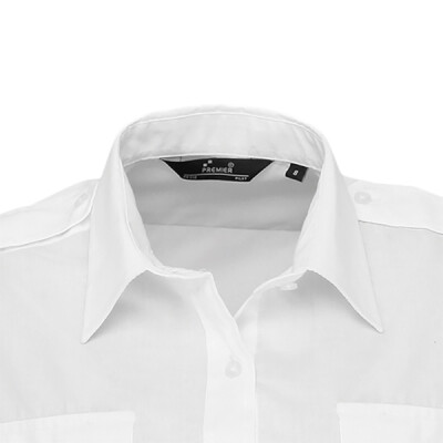This women's long sleeve blouse offers tabs on the shoulders for the application of Epaulettes (PR715) and the stiffened collar makes it easy to affix a clip-on cravat (PR711).