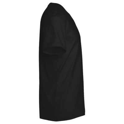 Short-sleeved T-shirt. Tubular construction, exact 2-ply V-neck,1x1 ribbed collar with Elastane.