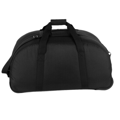 Detachable adjustable shoulder strap with pad, padded hand grip, compression straps. Haul handle, heavy duty wheels, zippered pouch pocket.