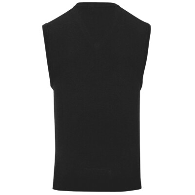 Cotton rich with a fine 12 gauge knit. Sleeveless with ribbed detail on the arm holes, v-neckline and hem.