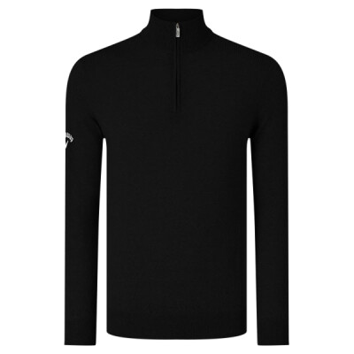 Ribbed shoulder ¼ contrast zip Merino sweater. Contrast or tonal embroidered Callaway Tour logo on the wearer's right sleeve and Chevron on the back neck. Oeko-Tex certified. Reach certified. WRAP certified.