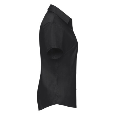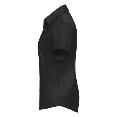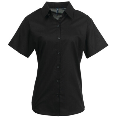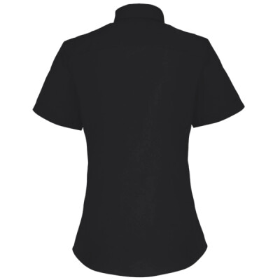 Ladies signature Oxford short sleeve Easycare blouse with wrinkle free finish for a smart and professional appearance. Soft collar styling. Rounded bottom hem. Fitted styling with bust and back darts. Pearlised buttons on light blue and white shirt, self