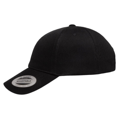 Masculine dad cap, new alpha shape, made from cotton, adjustable buckle closure, pre-curved, six-way quilted visor, innovative form. Fabric features a patented Ecowash process (US Patent Number: 12247341).