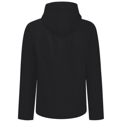 Warm-backed woven softshell XPT waterproof and breathable 3 layer membrane fabric. Fully printable outer fabric, with wind resistant inner membrane. Detachable softshell fabric hood, adjustable shock cord at face and cuff adjusters. 2 zipped lower pockets and 1 zipped chest pocket. .