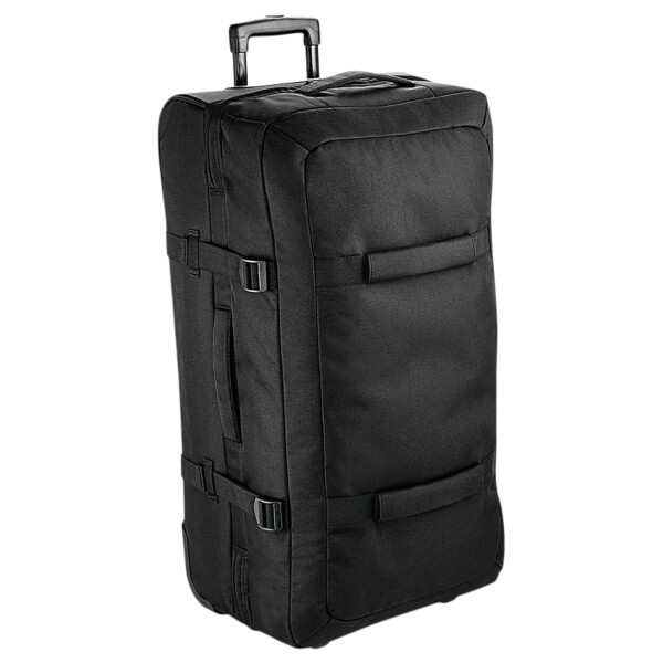 TearAway label for ease of rebranding. Convenient dual compartment design for easy packing. Lockable main compartment zip. External identification window. Removable Rip-Strip™ handle wraps for ease of decoration. Dual compression straps. High stability retractable twin-handle. Durable front grab handles. Padded top and side handles. Durable integrated skate wheels. Can be further customised with BG485 Escape handle wrap.