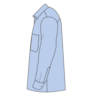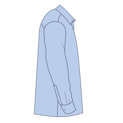 Fused stand-up button down collar. Two darts at back. Rounded hem. Back yoke. Two button cuff with buttoned cuff placket. Single stitched yoke and armhole. Spare buttons. Kustom Kit® woven back neck label.