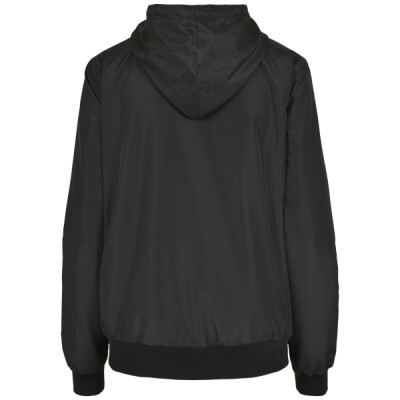 Casual basic windbreaker for women made of 37% recycled mesh material with ribbed cuffs and hem. Perfect for printing the jacket - insert in the back and the lining hem with zipper ensure that the jacket can be printed without problems. Top wearing comfort thanks to the pleasant material, the light mesh lining and the regular cut plus hood with drawstring.