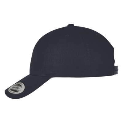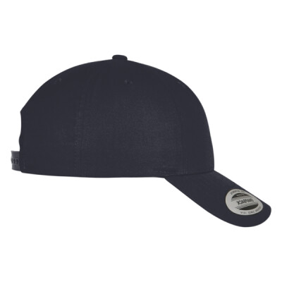 Snapback, curved visor, six-panel. Made from recycled polyester twill.