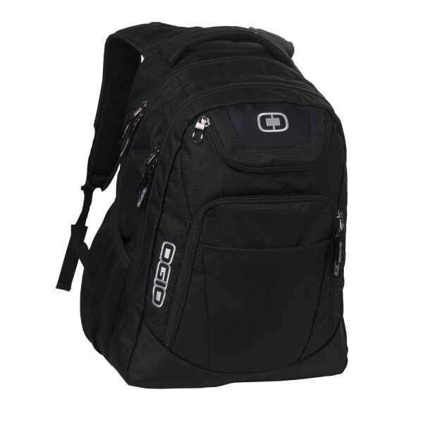 Padded interior laptop compartment fits most 17" laptops. Padded iPad™/Tablet/E-Reader sleeve. Zippered fleece lined top valuables pocket. Large main compartment for books, binders and files. Padded back panel with air mesh for moisture wicking. Dual side water bottle/accessory holders. Organization panel with zippered stash pocket. Front slip pocket. Large grab handle. Adjustable shoulder straps with sternum strap. Dimensions: 15.5" x 11.25" x 1.5" Capacity: 2,400 cu. In./ 39.9 L Approx. Print Area: 15.24 cm