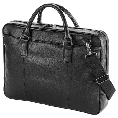 TearAway label for ease of rebranding. Full length zippered front pocket for ease of decoration. Self-fabric carry handle.Gunmetal fittings. Padded laptop compartment. Laptop compatible up to 15.6".Padded internal iPad / tablet compartment. Fully lined in pinstriped fabric. Internal organisation pockets. Zippered internal pocket. Detachable adjustable shoulder strap. Reach certified.