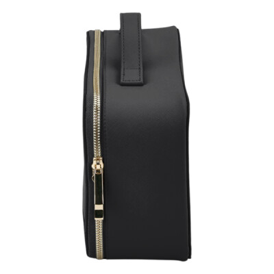 100% Leather-look PU. Saffiano fine grain. Multipurpose use. Zipped main compartment. Transparent clear view panel. Soft-touch lining. High-shine gold metal zip. Self-fabric carry handle. TearAway label for easy rebranding.