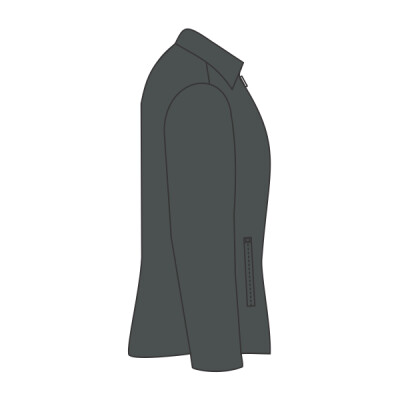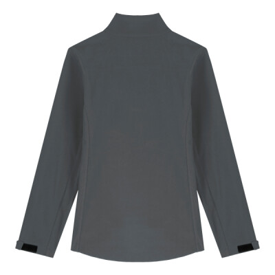 Women’s softshell jacket, medium fit with a high collar and set-in sleeve. Bottom hem with adjustable plastic stopper and elastic cord. Reverse nylon zip at centre front. Zipped outside welt pockets with reflective elastic puller. Fully bonded inside fleece layer. Side panels and stretch for better shape. Adjustable hook and loop sleeve opening. Inside seams finished with recycled binding. Water-repellent up to 10,000mm, breathability up to 3000G/M2/24hrs allowing perspiration to escape. Windproof. Bionic ECO DWR (durable, water-repellent) finish.