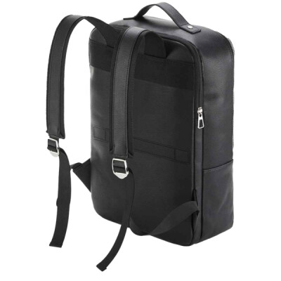 Contains 100% certified recycled polyester. Two-way zipped opening for easy access. Rear padded laptop compartment, compatible up to 16". Zipped front pocket. Two internal slip pockets. Internal water bottle holder. Rear luggage strap. TearAway label for ease of rebranding.