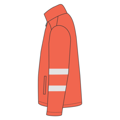 Reflective shoulder, body and sleeve bands. Workguard Grey contrast panels masks grime. Zipped pockets. Elasticised cuff. Stand-up collar. Hang tag loop. Unlined. Generous fit. Ready to band cut away label. EN ISO 20471:2013 + A1:2016 CLASS. RIS-3279-T0M: ISSUE 2:2019 CLASS 2 (orange only). Decoration Guidelines: Embroidery. Decorators access point: open.