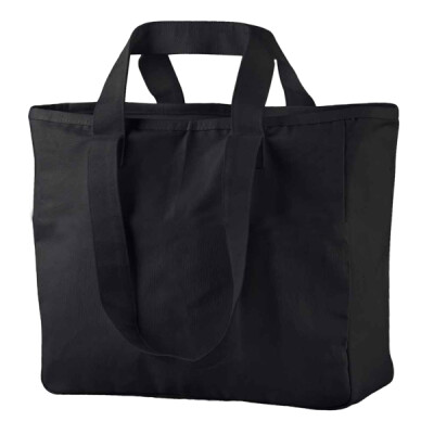 Premium heavyweight fabric. Durable canvas construction. Large capacity. Two front pockets. Zipped main compartment. Nylon zip with self-fabric pull. Dual self-fabric carry handles. Can be carried by hand or over the shoulder. CutAway label for ease of rebranding.