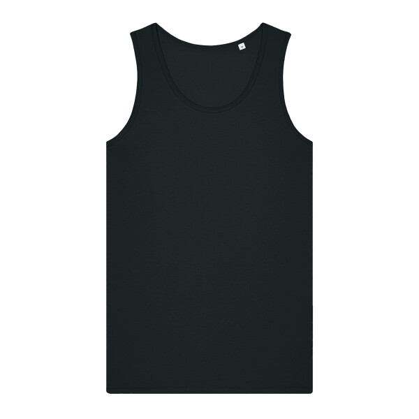 The Stanley Stancer tank top for men. Medium fit. Sleeveless. Self-fabric binding with twin-needle topstitches at collar and armhole. Back neck tape in self-fabric. Twin-needle topstitches at hem.